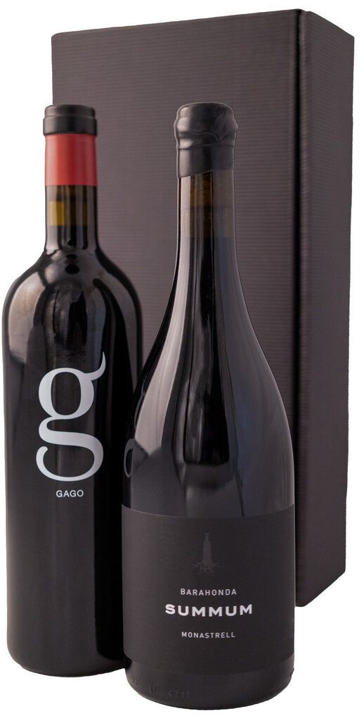 Dans ce set cadeau, vous recevrez deux de nos vins espagnols les plus populaires, que vous pourrez déguster en toute occasion. Gago, le Toro DO de Telmo Rodríguez, a un caractère très compact avec des notes concentrées de fruits et des tanins présents mais parfaitement intégrés. Les raisins de ce vin proviennent de 21 parcelles différentes avec des vignes de 60 ans. Summum de Bodegas Barahonda, un vin 100% Monastrell, très généreux, mais en même temps fruité et très plaisant à boire. Les vignobles de la bodega s'étendent sur les deux sous-régions de l'appellation Yecla et portent l'appellation d'origine D. O. Yecla.